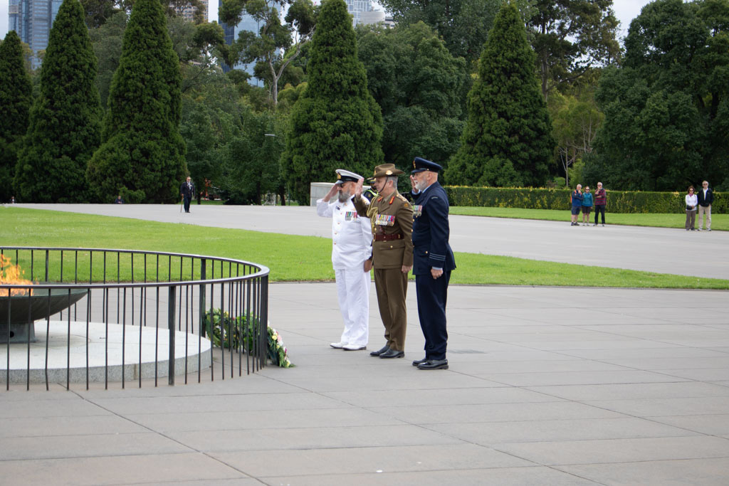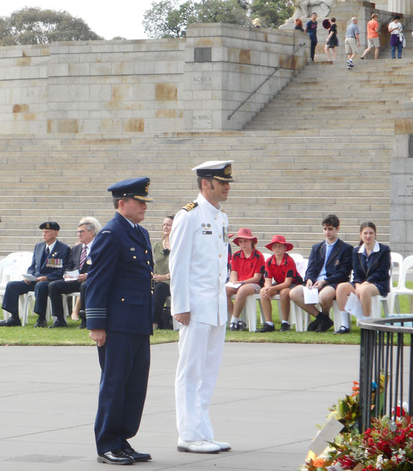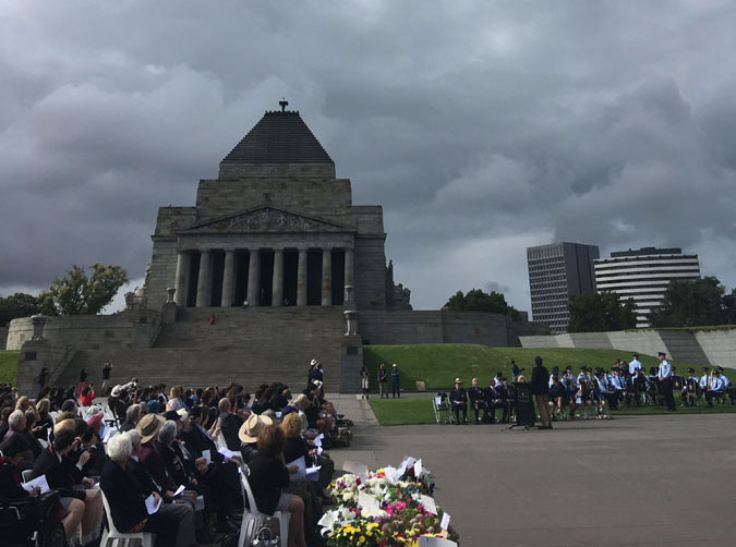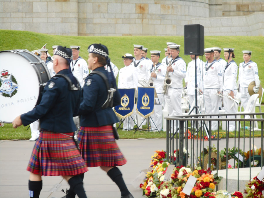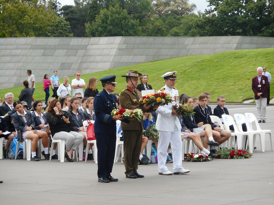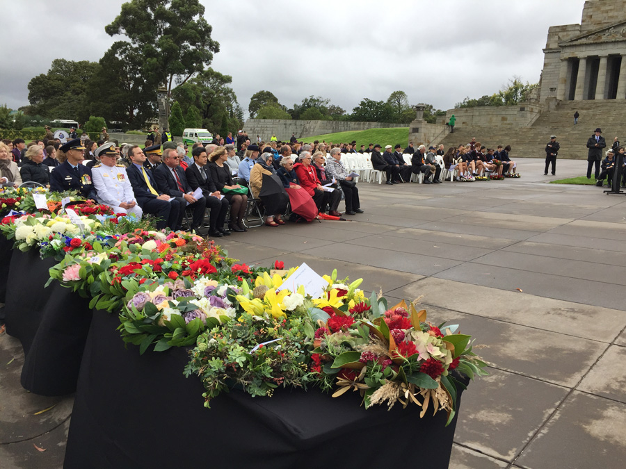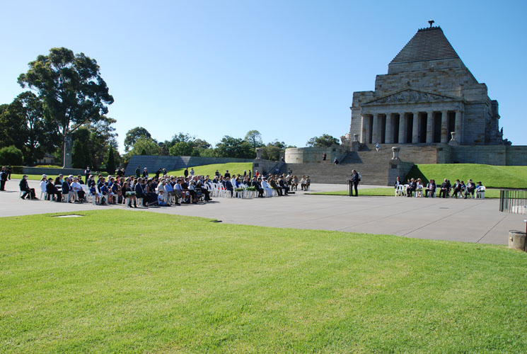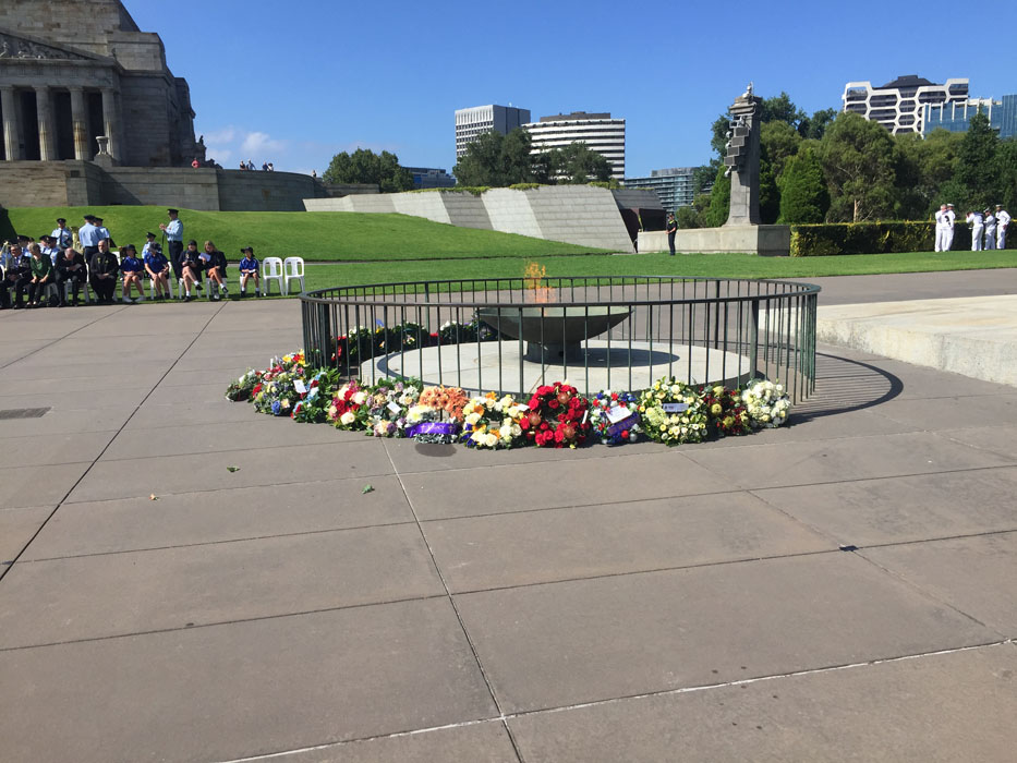 The Music for the service was provided by the Australian Army Band Melbourne and the Catafalque party attended from HMAS Cerberus. The Ode was recited by Dr Robert Webster OAM, President of RSL Victoria and Reverend Siôn Gough Hughes from the Wesley Church in Melbourne led the prayers.