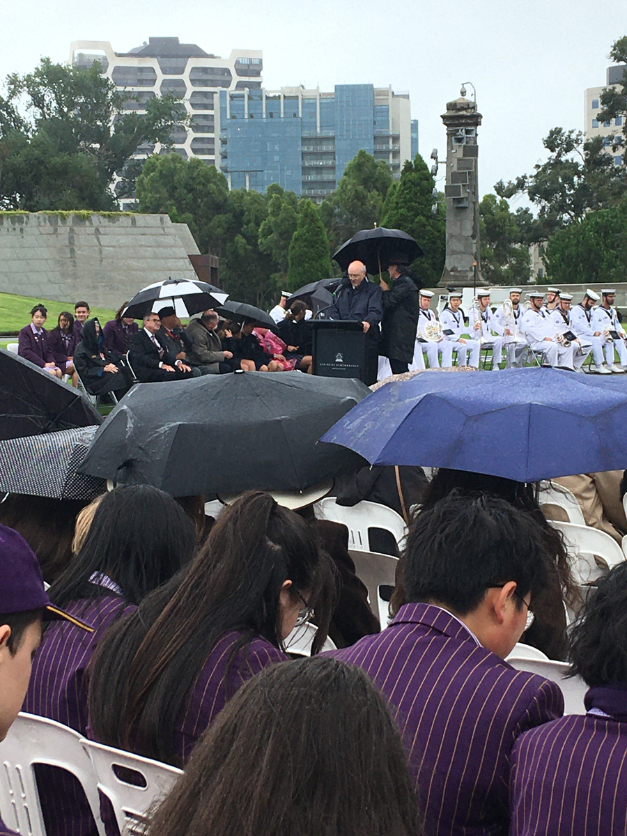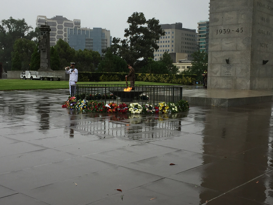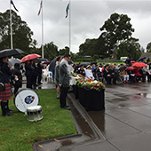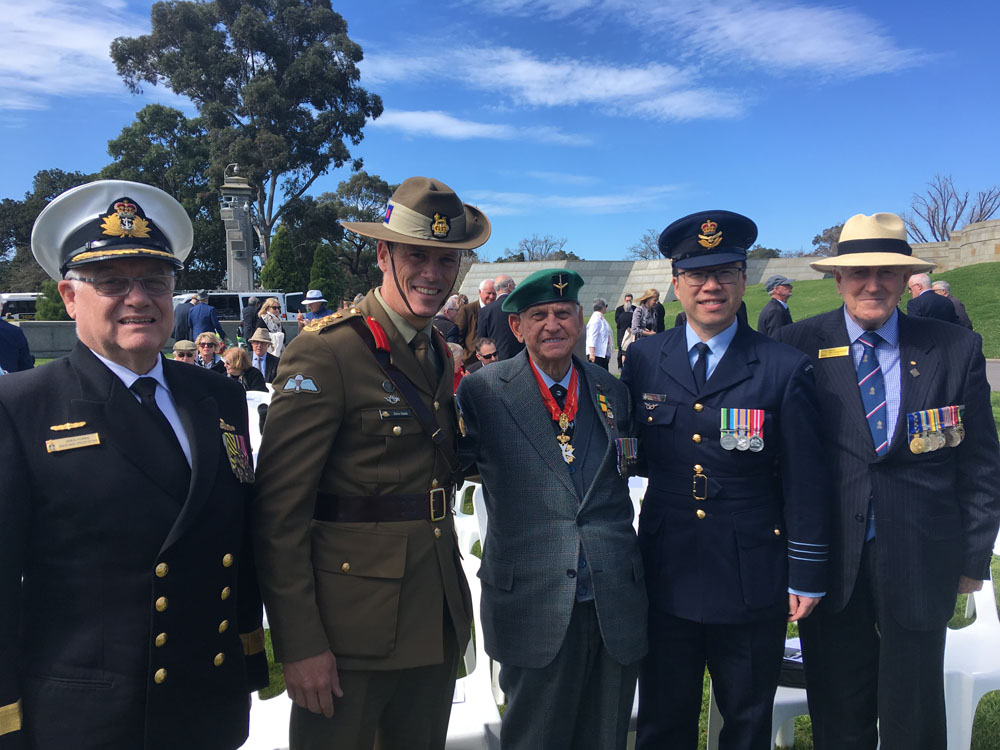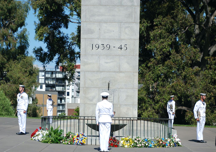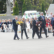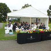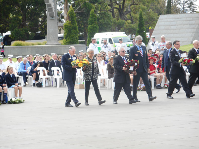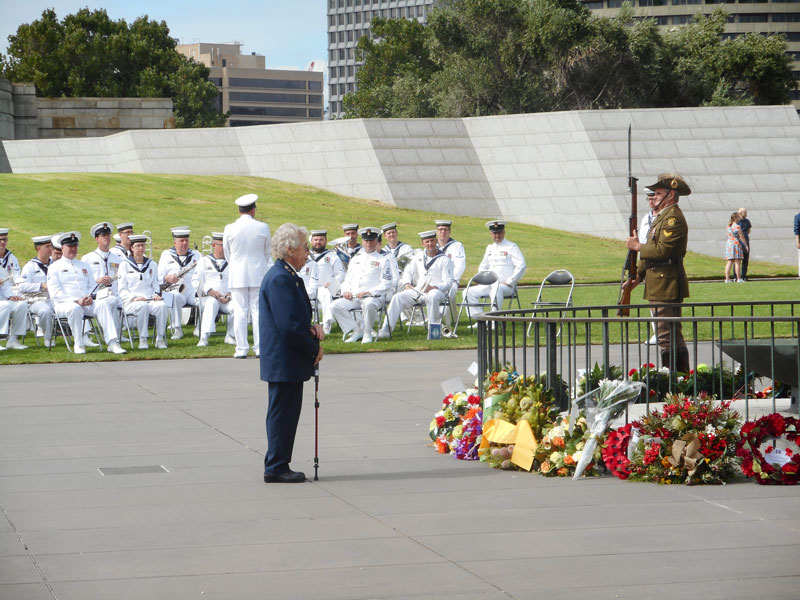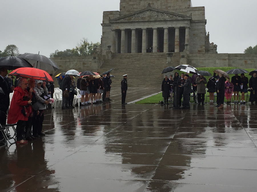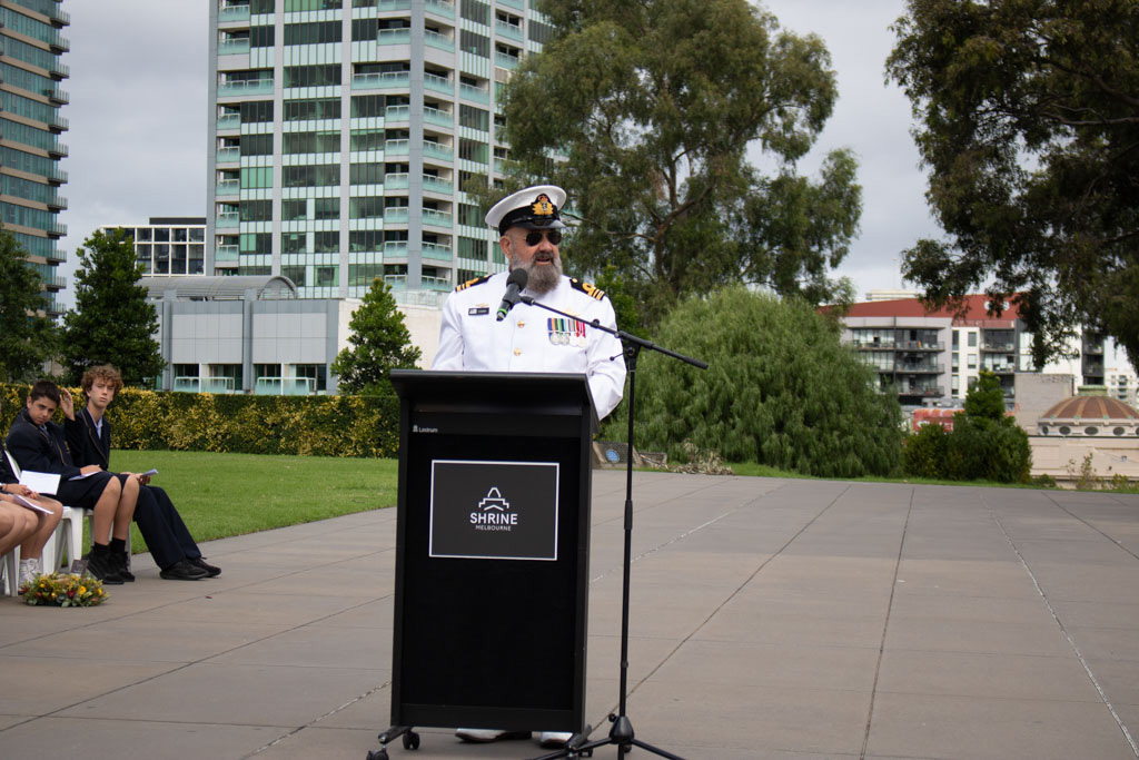 The Music for the service was provided by the Australian Army Band Melbourne and the Catafalque party attended from HMAS Cerberus. The Ode was recited by Dr Robert Webster OAM, President of RSL Victoria and Reverend Siôn Gough Hughes from the Wesley Church in Melbourne led the prayers.
