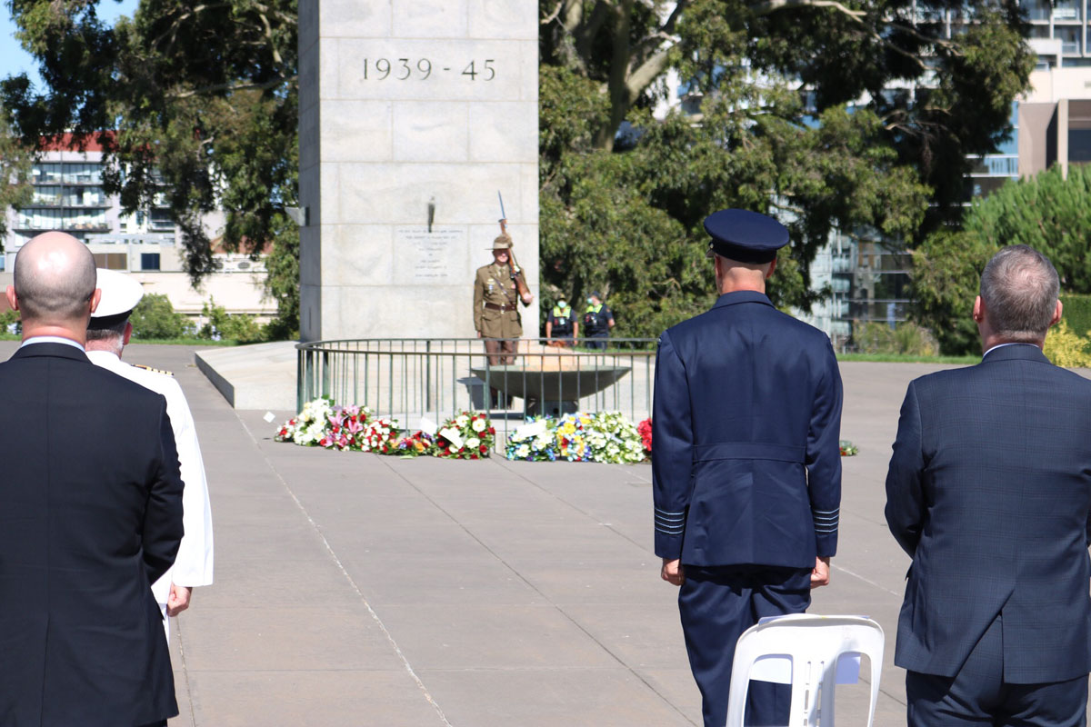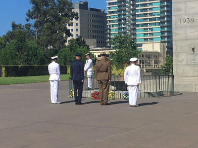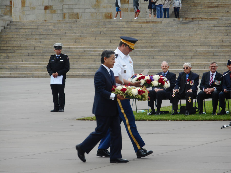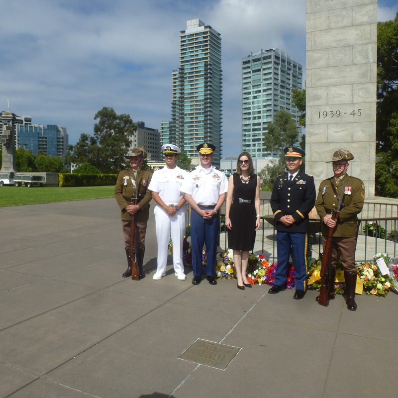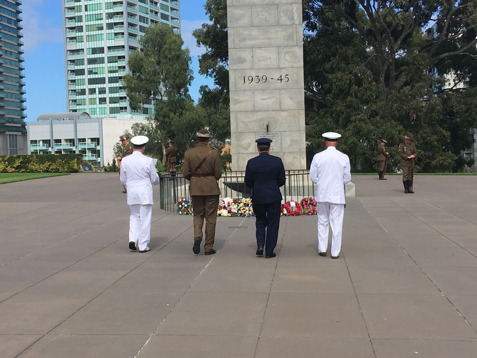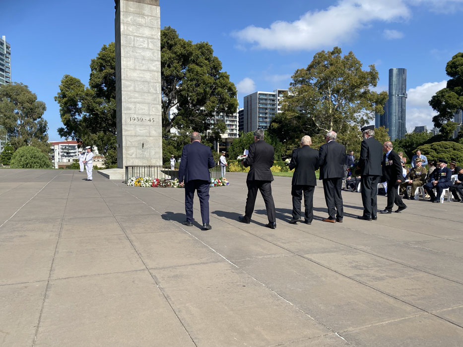 Wreaths were laid by representatives from State Government, City of Melbourne, Navy, Air Force, Army, The Consular Corps including Consulate General of Japan, United States of America, Great Britain and New Zealand. The ex-service community was represented including the Air Force Association (Mr Max McGregor), Legacy, The Victorian RSL, American Ex-Servicemen’s Association & Department of Veterans Affairs Victoria.