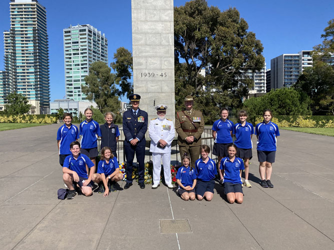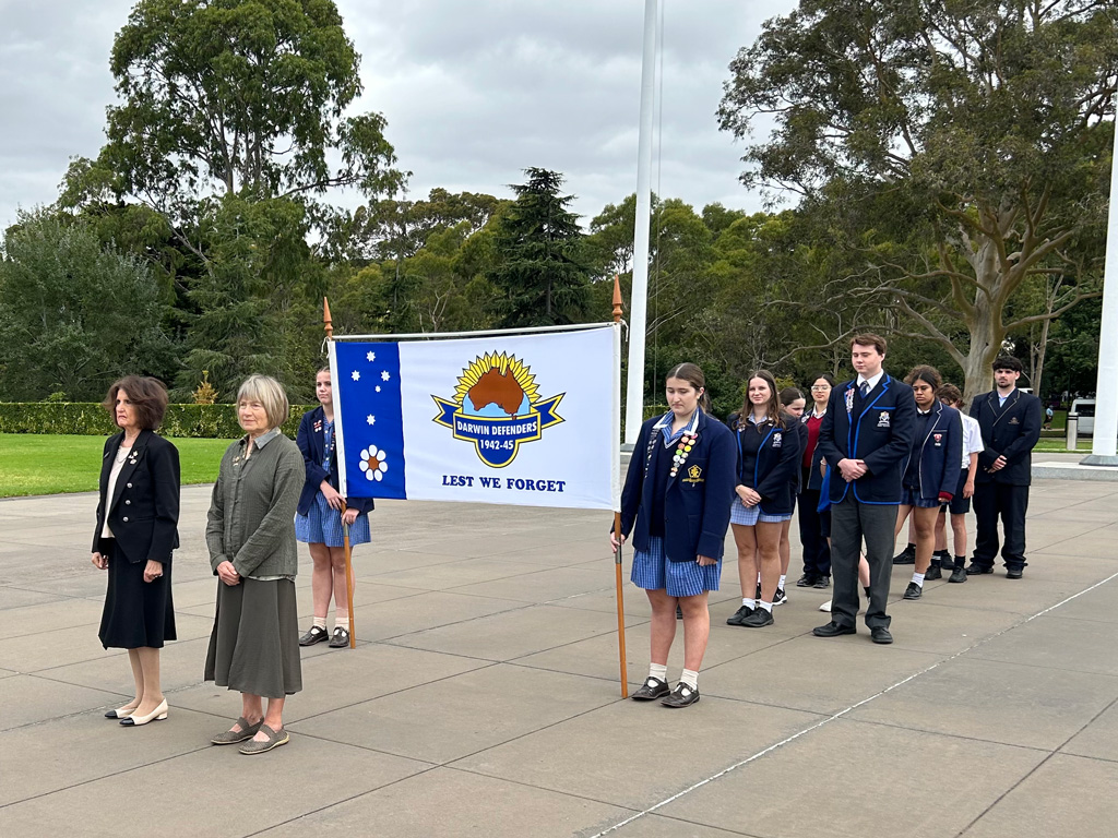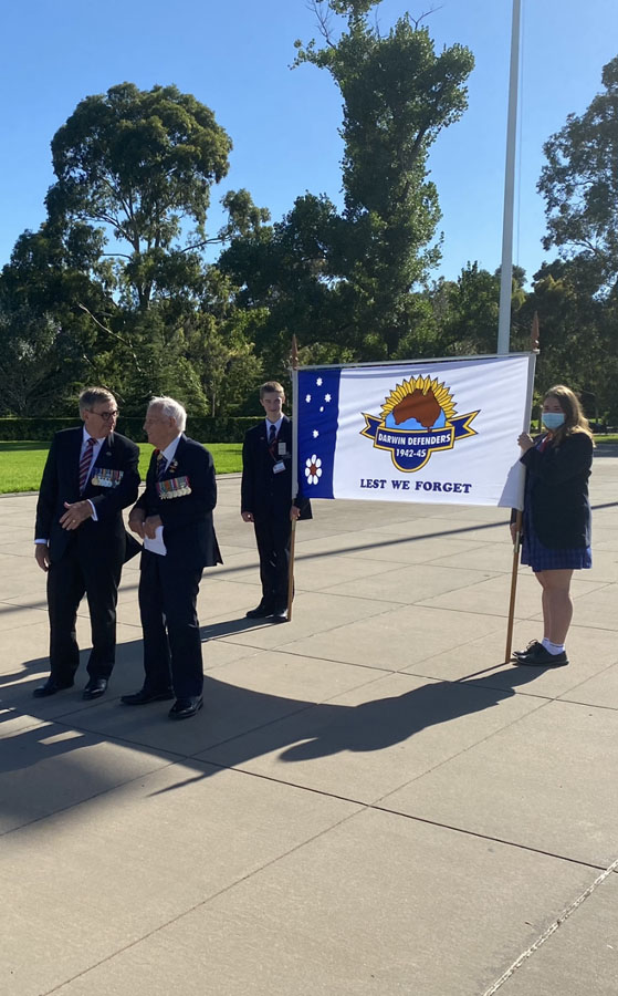 With many schools imposing excursion restrictions due to COVID-19, it was wonderful to have students from Ashwood High School, Christ Church Grammar School and Puckapunyal Primary School attend the service. Student Gemma Koch from Puckapunyal PS commented … We read out the Darwin Defenders Day Memorial poem written by Darwin Defenders President, Alan Day and laid a wreath with many others alongside the eternal flame. It was a very special day.