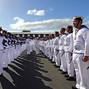 Recruit School is the culmination of 11 weeks of basic training to enable sailors to think for themselves and work with each other. The school provides them with the many skills needed to pass onto a naval career. Teamwork, self-discipline and professionalism are the key attributes developed within Recruits undertaking Recruit training. Recruits are expected to adopt and display in their behaviour and their attitude the Navy values, Honour, Honesty, Courage, Integrity and Loyalty.